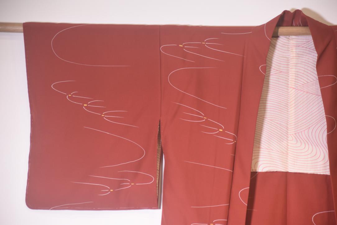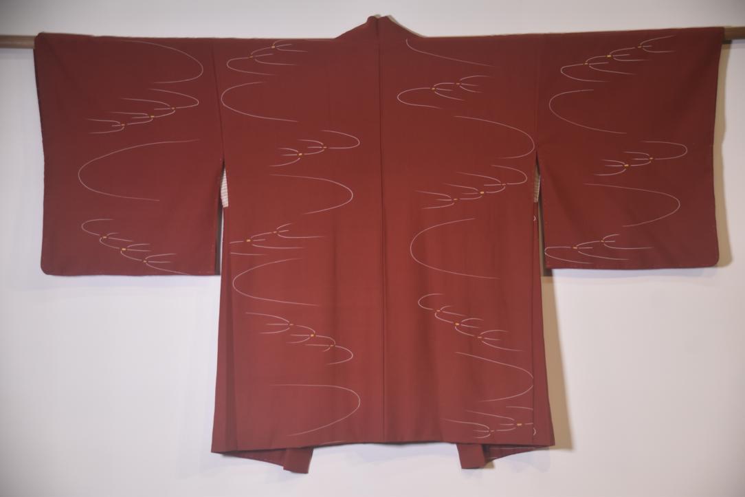 Nutmeg coloured Vintage Haori Jacket with reeds in the breeze design,