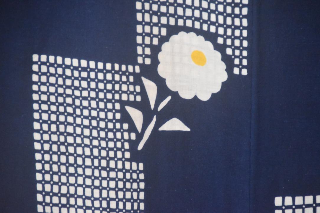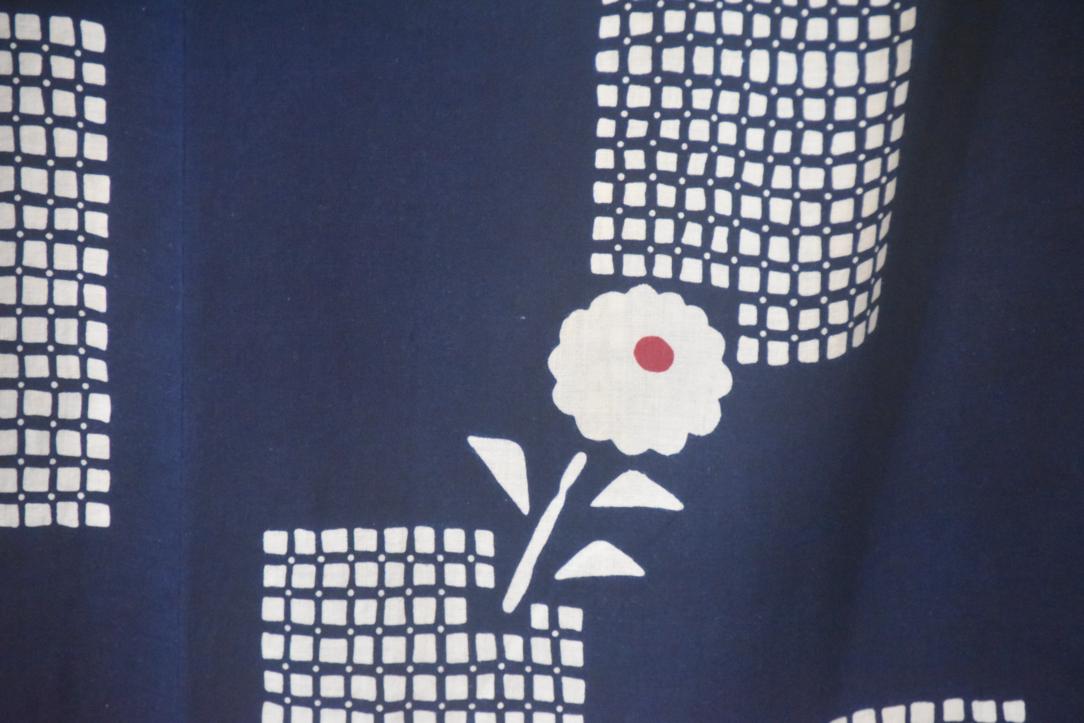 Classic Navy & White Vintage Japanese Cotton Yukata with a subtle floral and check design.