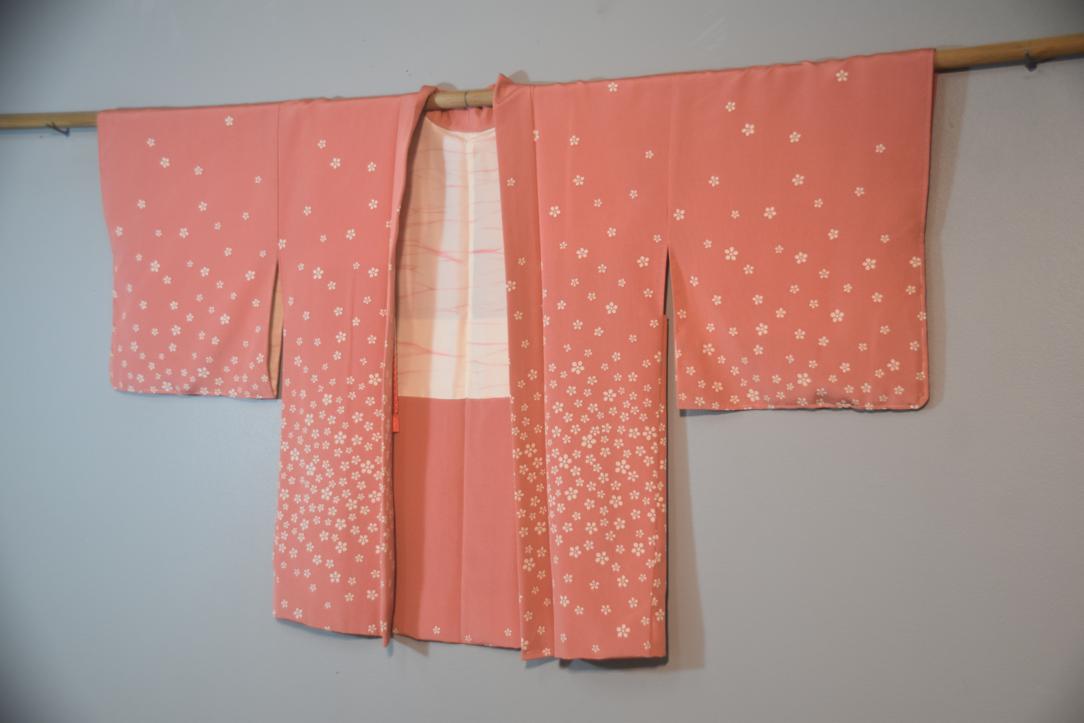 Coral Pink Floral Vintage Japanese Haori Jacket