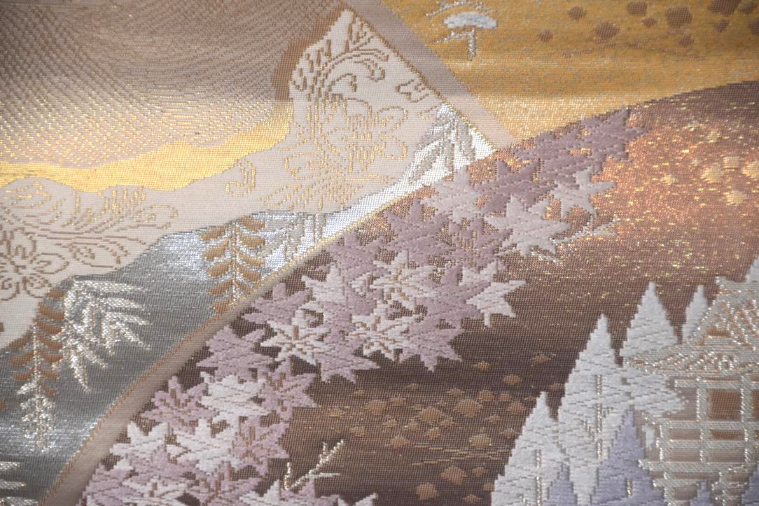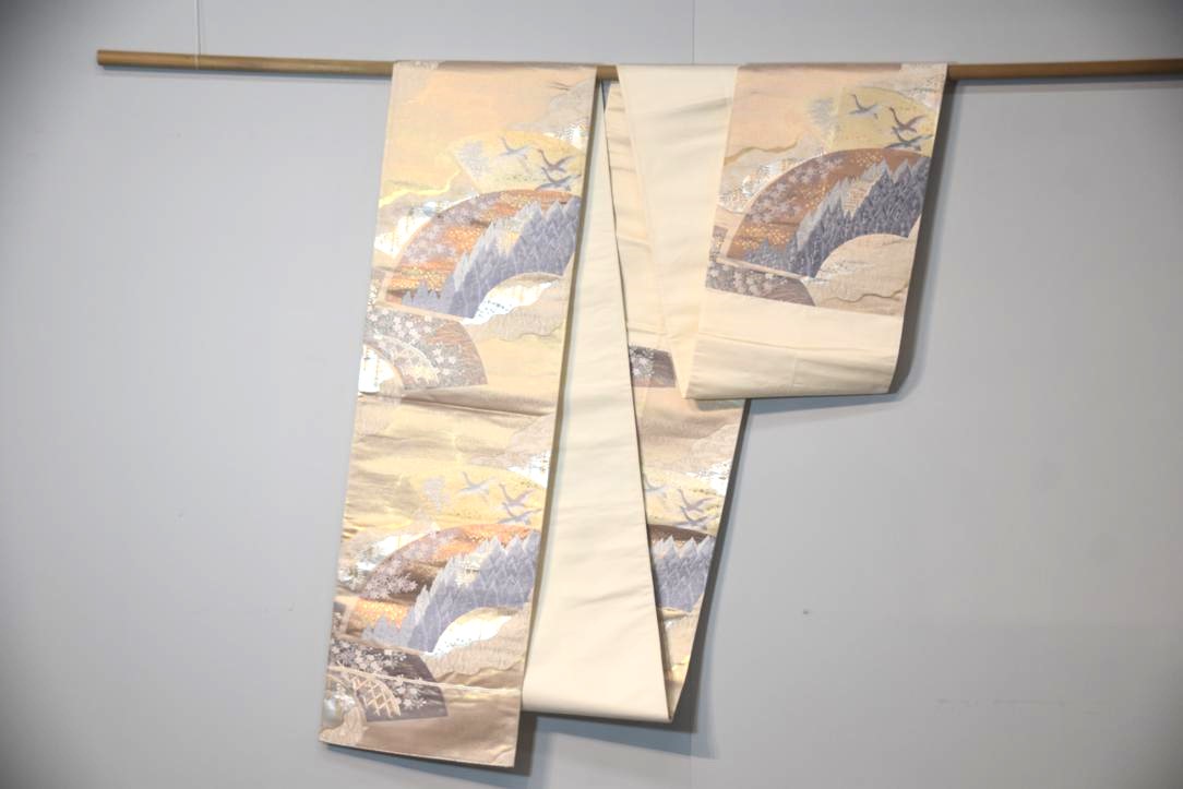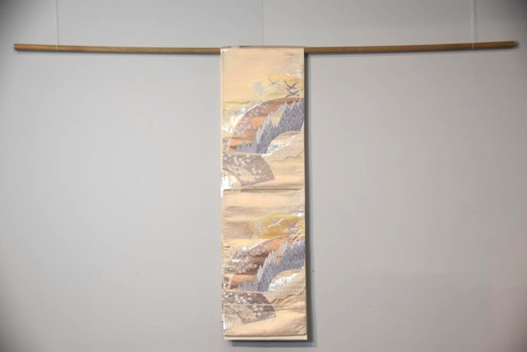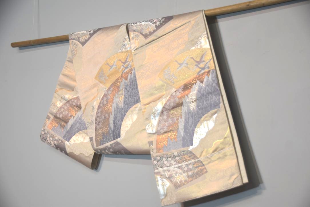 The Obi is a formal Japanese sash used with kimono, characterized by its “bag-like” construction, where two lengths of fabric (often silk and decorative lining) are sewn together.