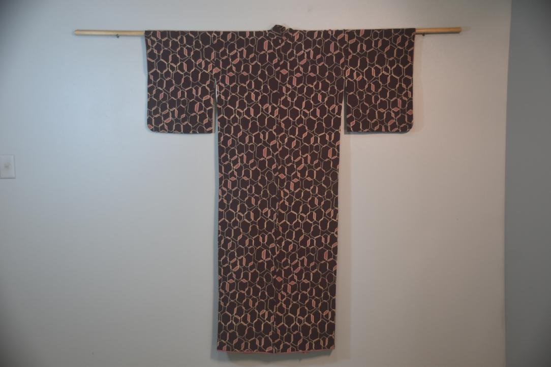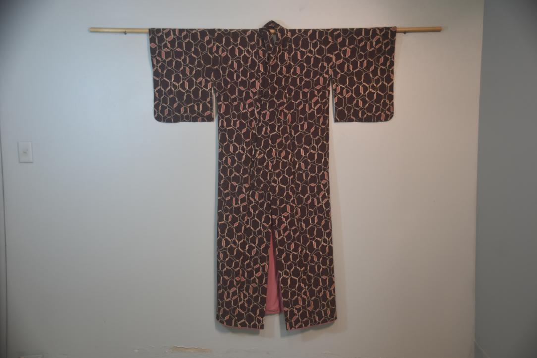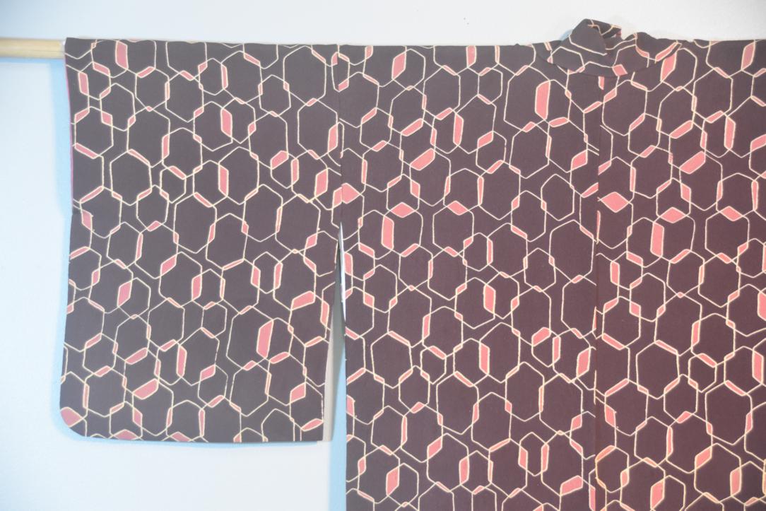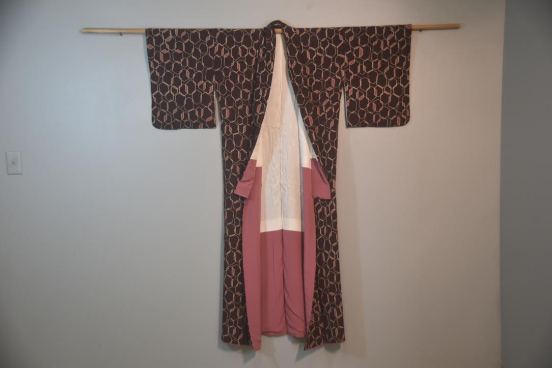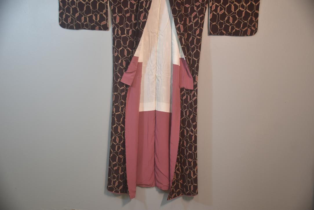 Dark Maroon & Pink Vintage Japanese Silk Kimono.