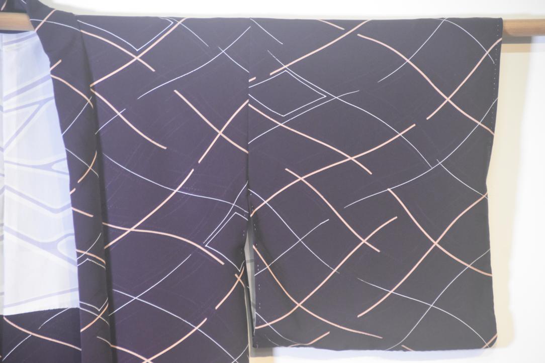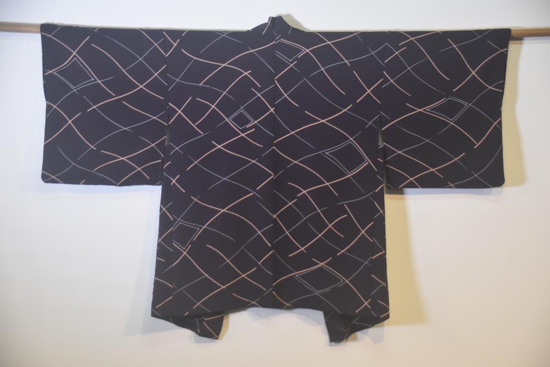 Deep Purple with geometric design Vintage Japanese Haori Jacket,