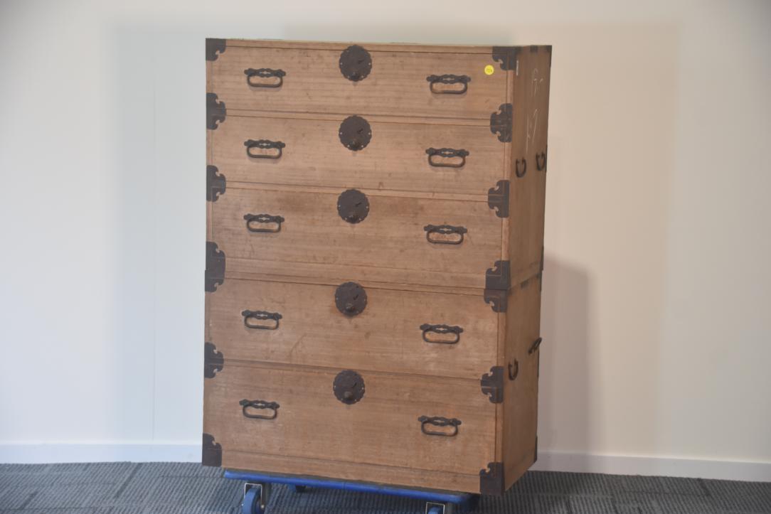 Japanese Antique 2 Section Clothing Chest with an uneven split.