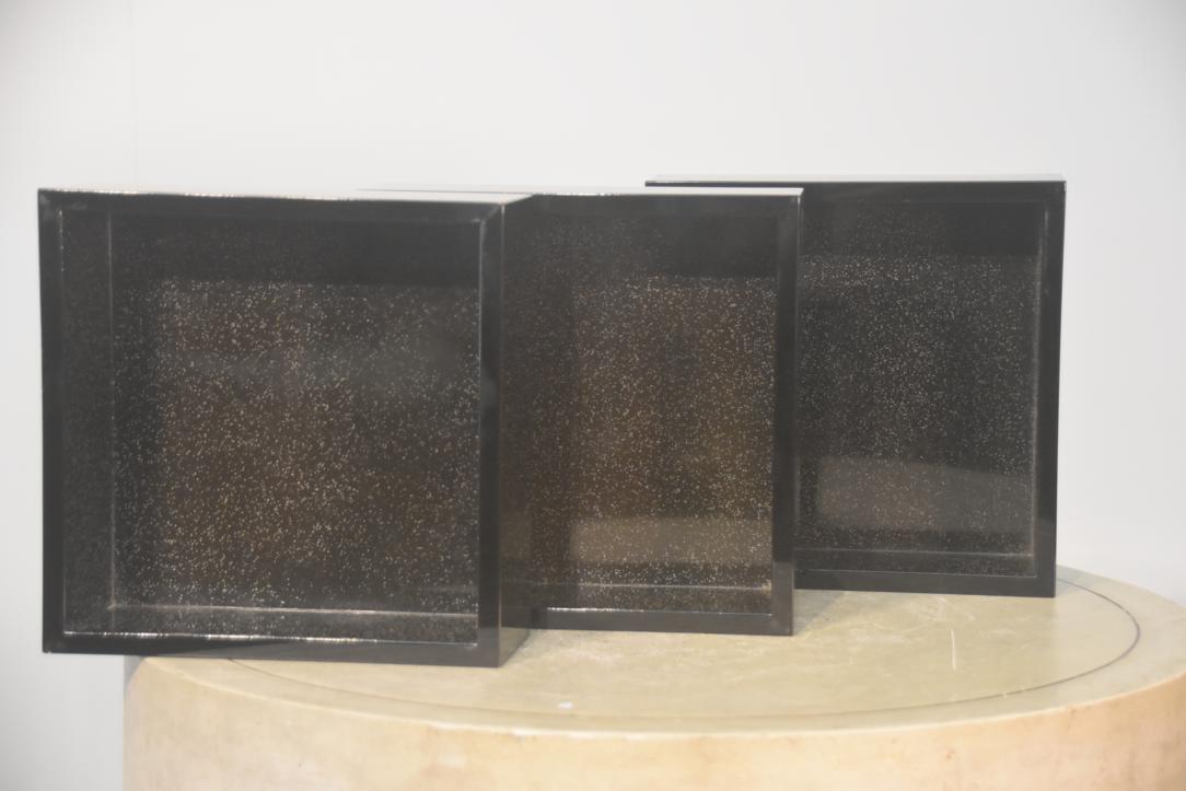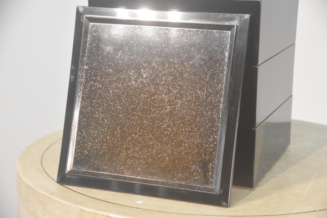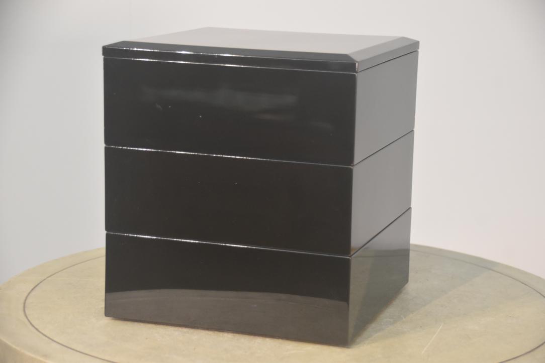 Japanese Black Lacquered Jubako 2 tiered lidded box. The interior of the boxes features Wakasa Lacquer in mother of pearl. Made by Japanese master craftsman specialising in Lacquerware.