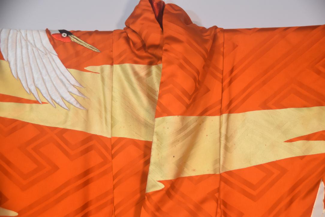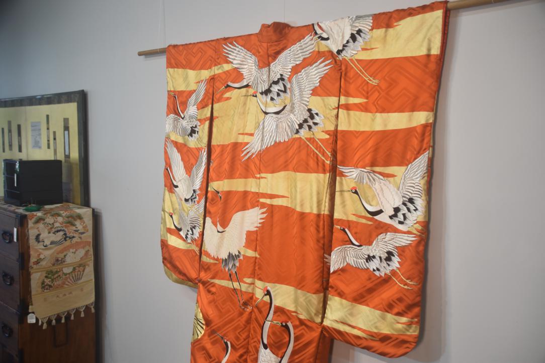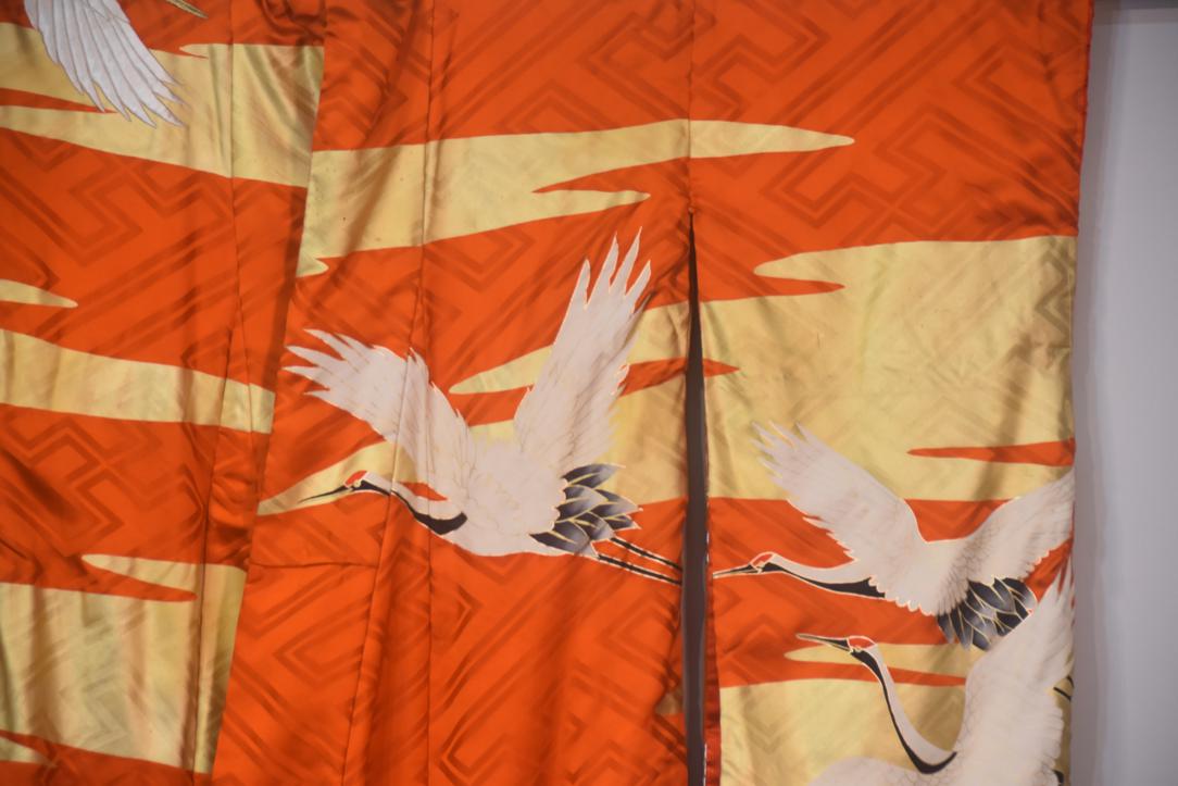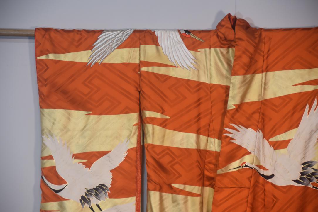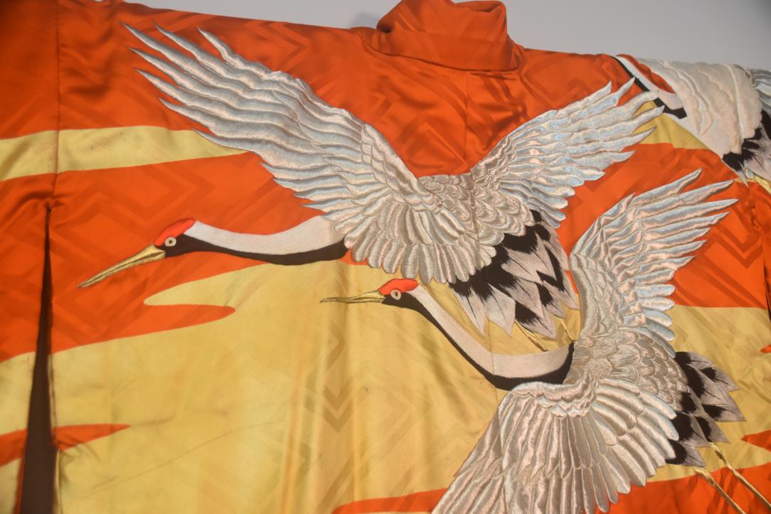 A highly colorful and decorative, luxurious outer robe worn over a formal kimono, typically used during the wedding reception. They often feature red, gold, or silver colors with auspicious patterns like cranes and pine trees.