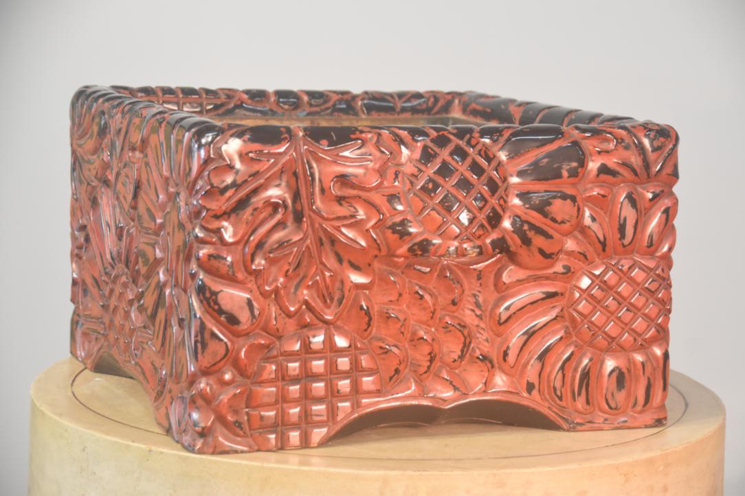 A Kamakura Bori Hibachi. It is carved then lacquered with red then black lacquer over that then the black is rubbed off creating this wonderful unique design.