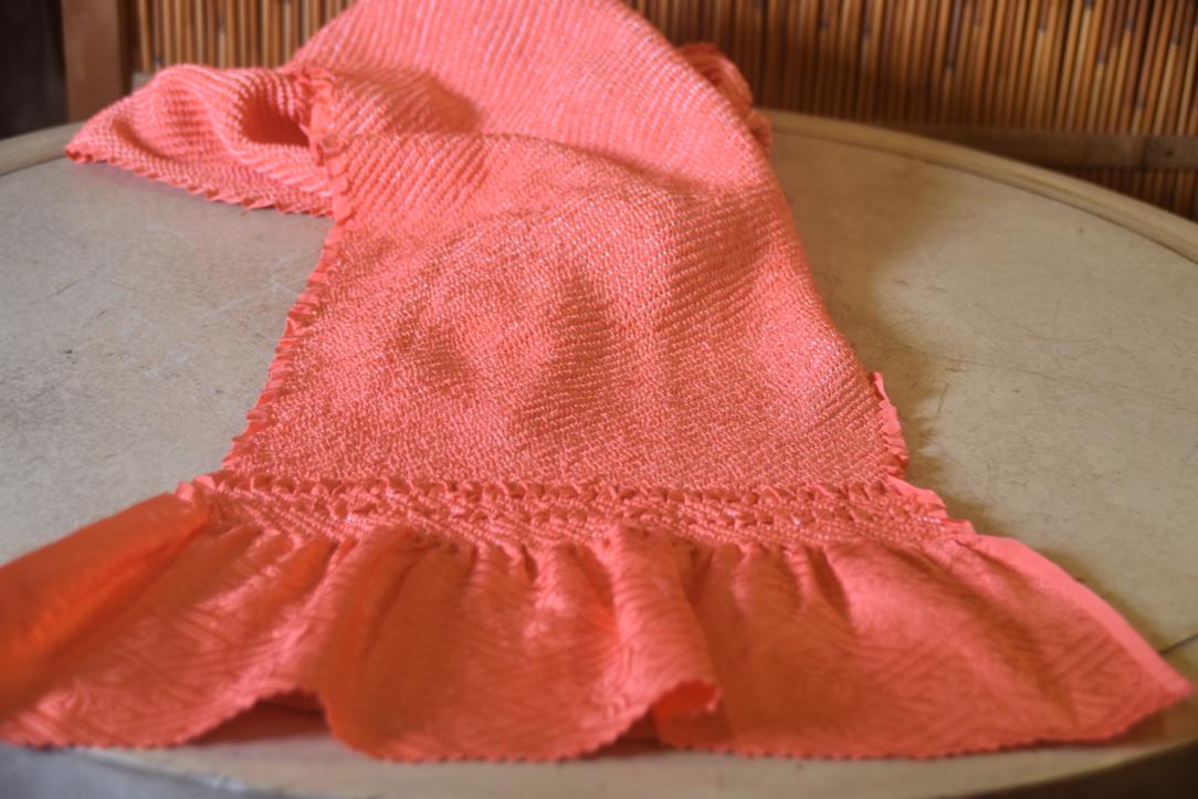 Japanese Watermelon Shibori Obi Silk Sash.