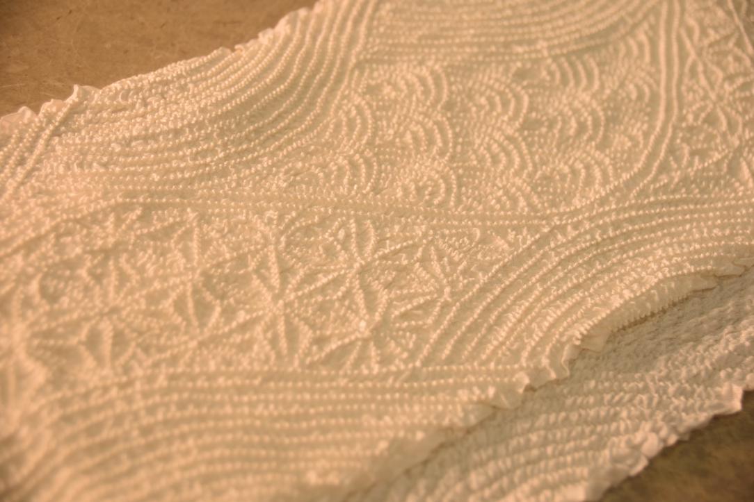 Japanese Wedding White Shibori Obi Silk Sash.