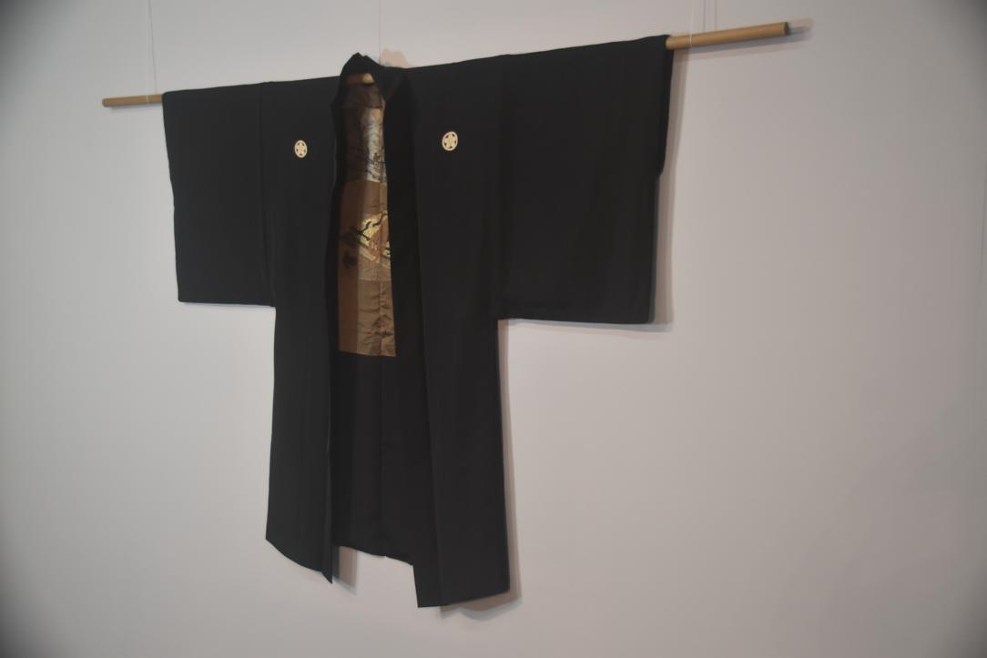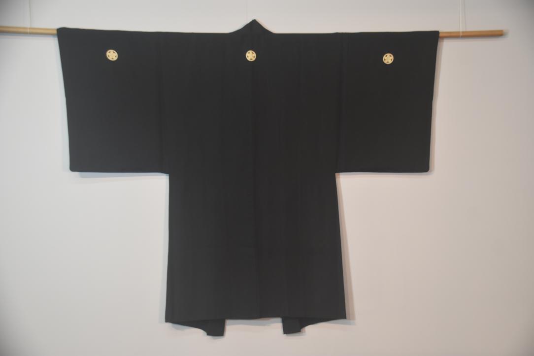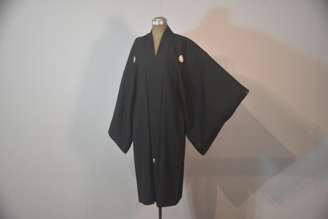 Mans Black Silk Vintage Haori Jacket