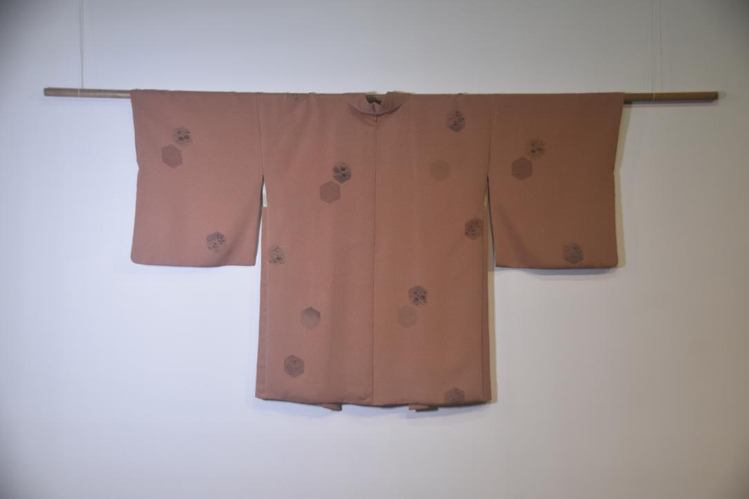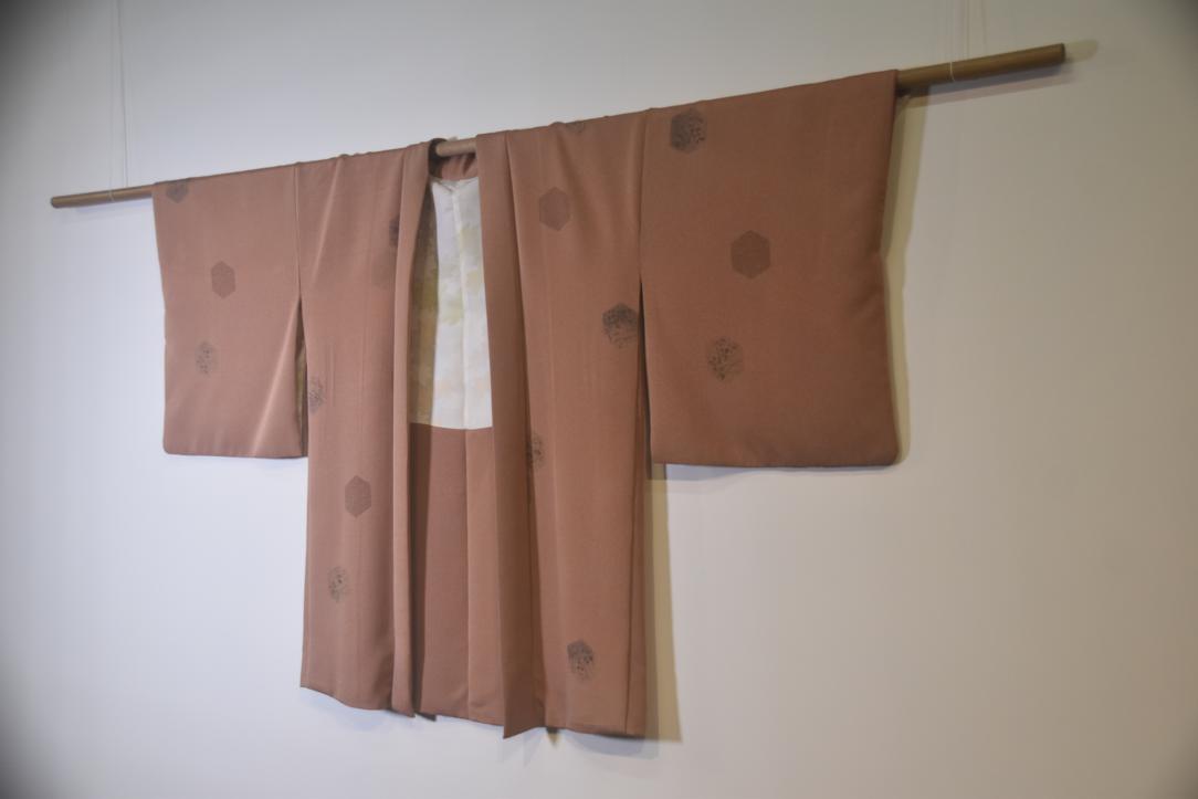This jacket has a soft peachy brown tone with very subtle flecks of a blue grey all over.