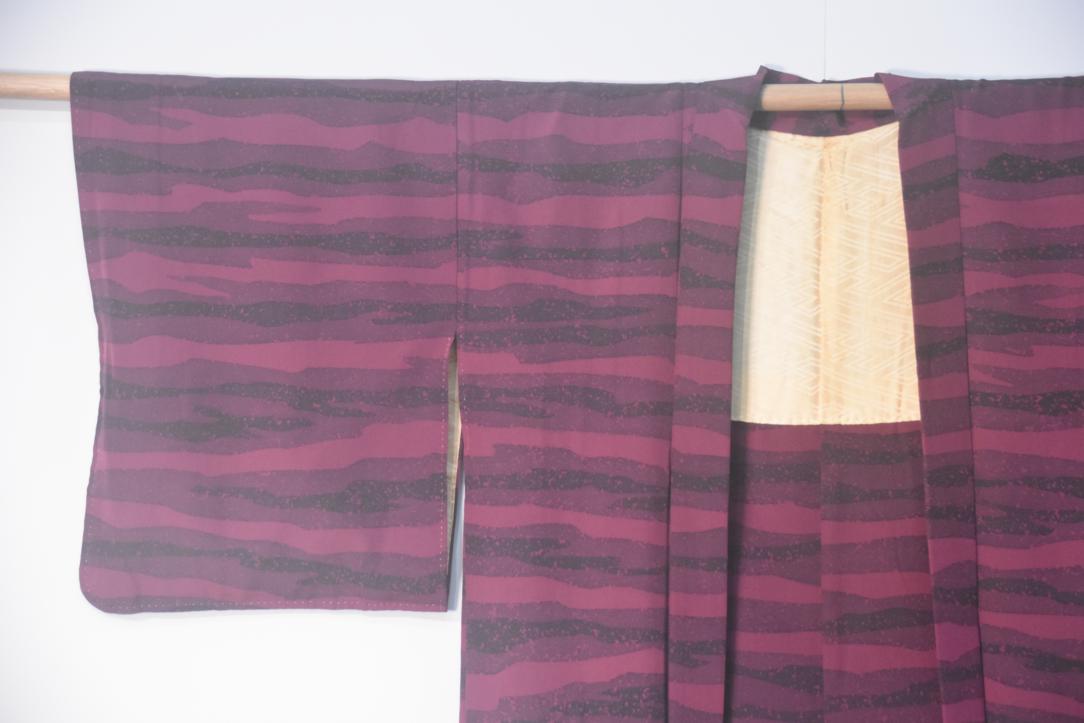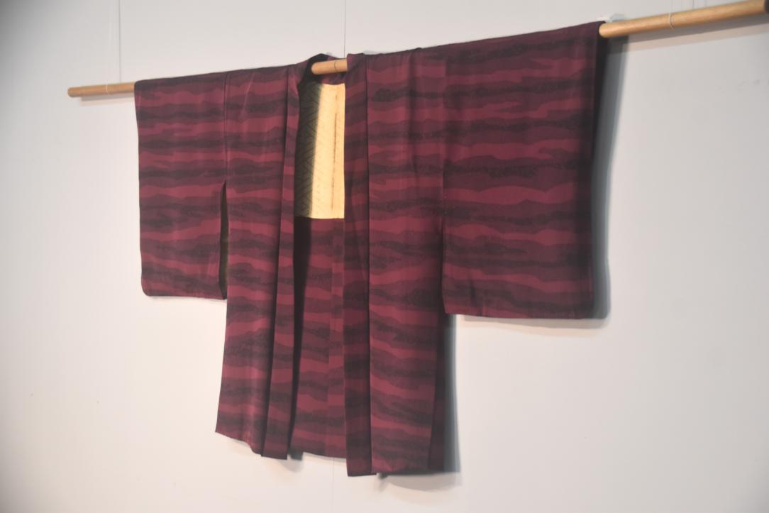 This haori is in a dark maroon with decorative lines running across the fabric.