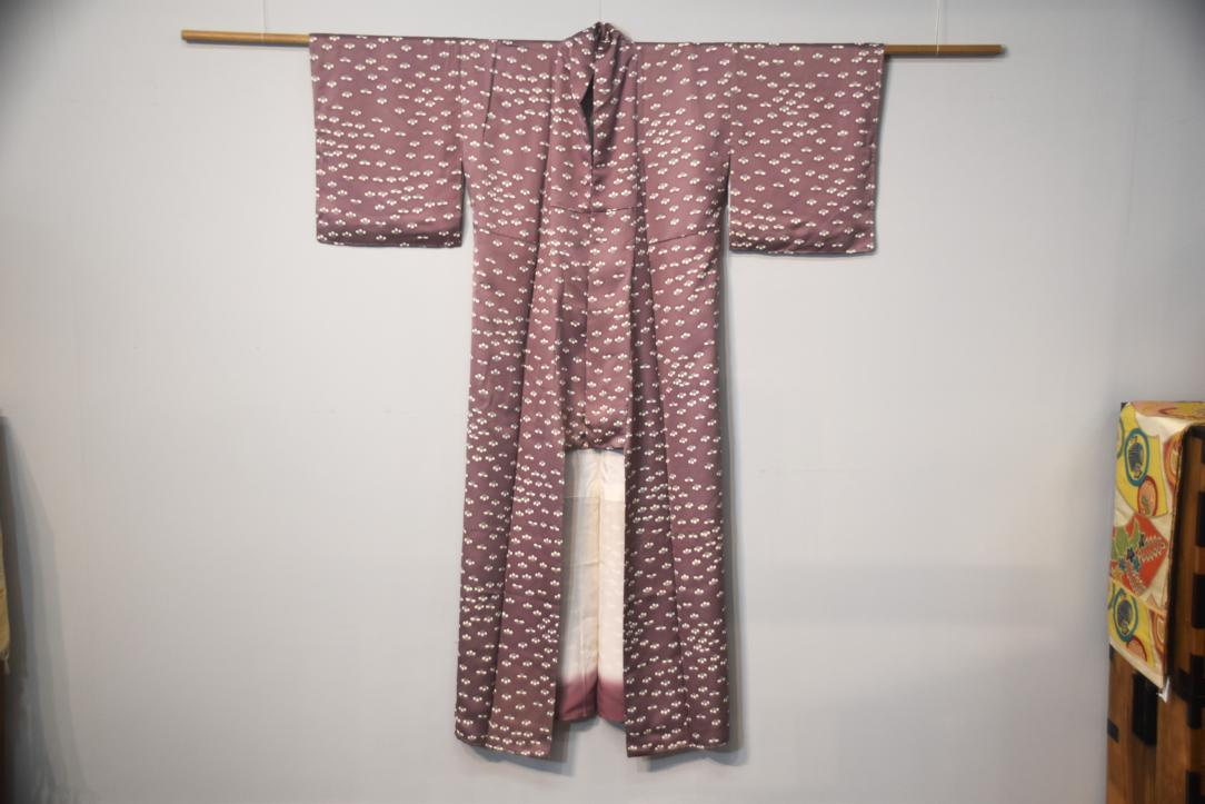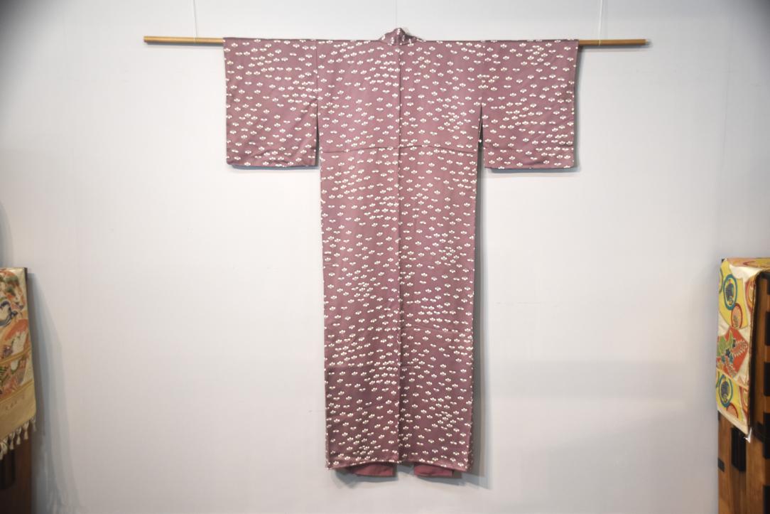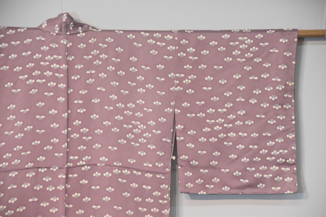 Mauve Luxurious Silk Kimono from Kyoto Japan with stylized spring flower bud design. Edo Arts imports original and authentic silk Kimono from Japan.