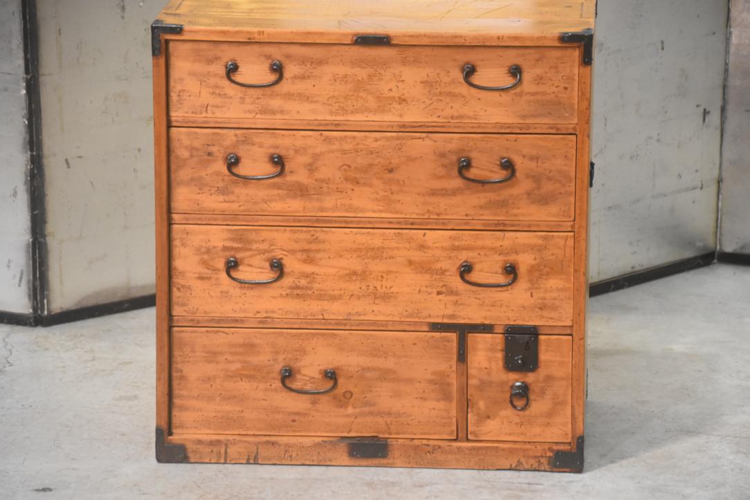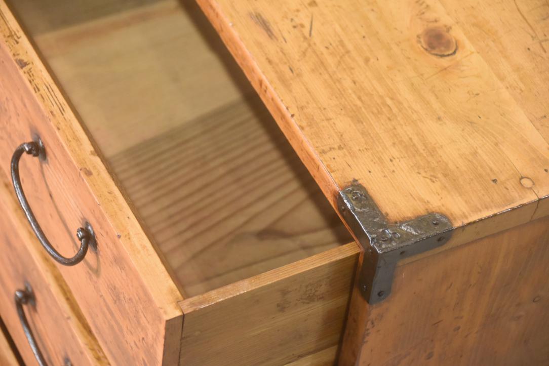 An antique chest from Japan was originally custom-made to store accessories worn with kimono—such as obi, obijime, obidome, and hair ornaments. Made from Sugi (Japanese Cedar) it reflects the thoughtful craftsmanship and refined sensibility of traditional Japanese design.