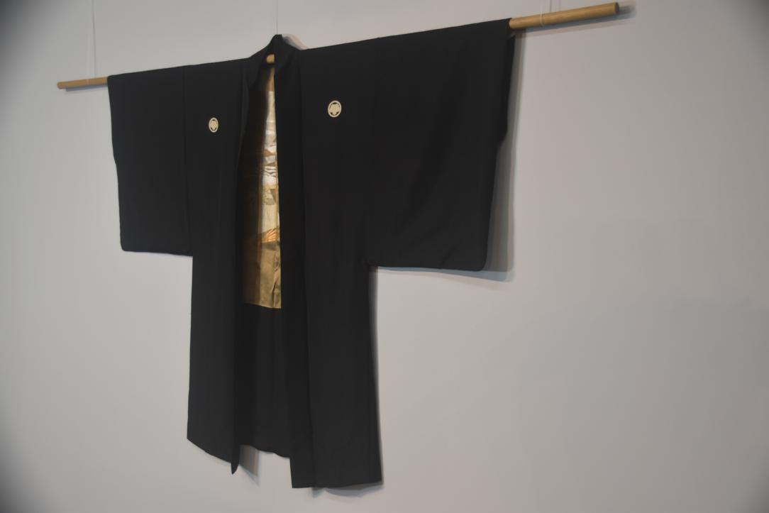 Mans Silk Vintage Haori Jacket with brocade lining featuring Mount Fuji.