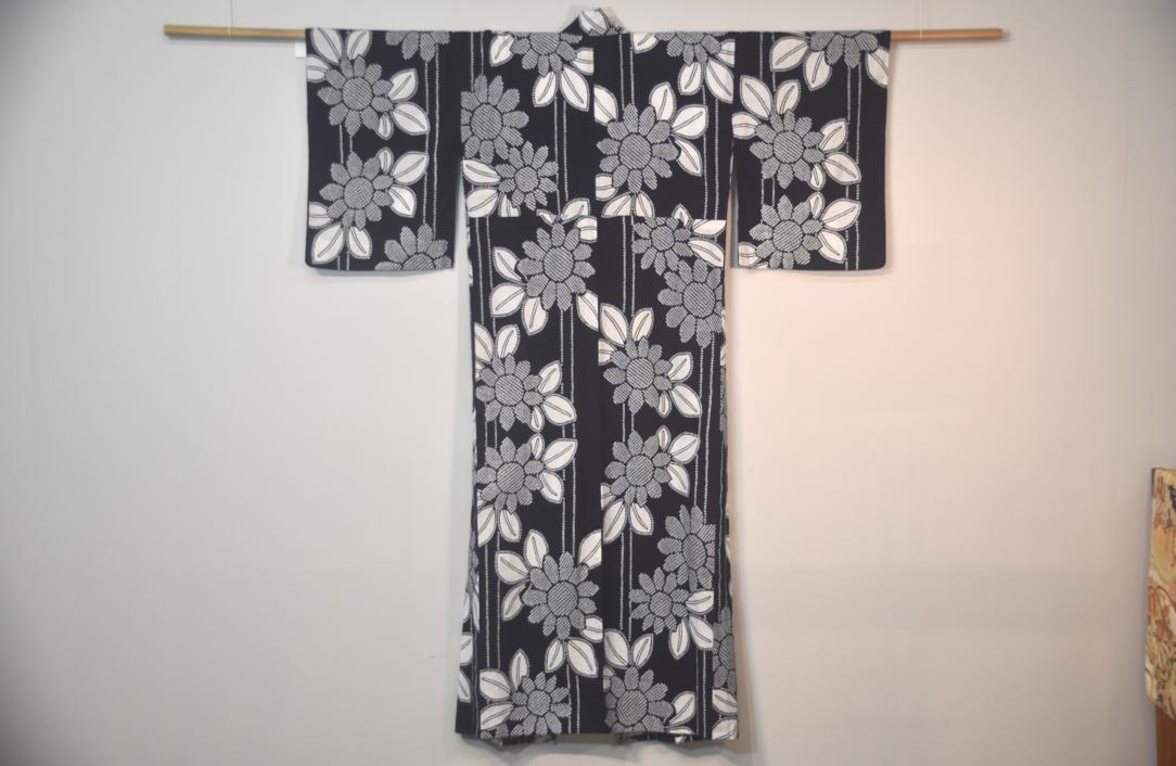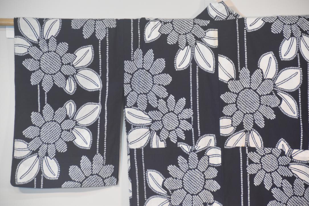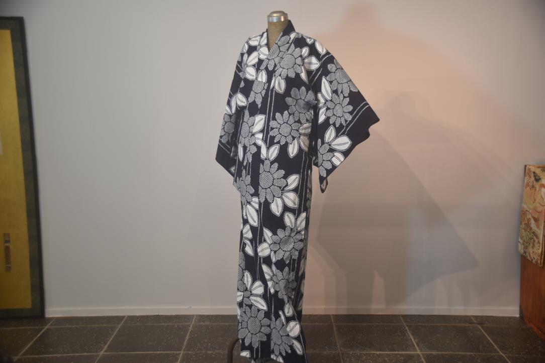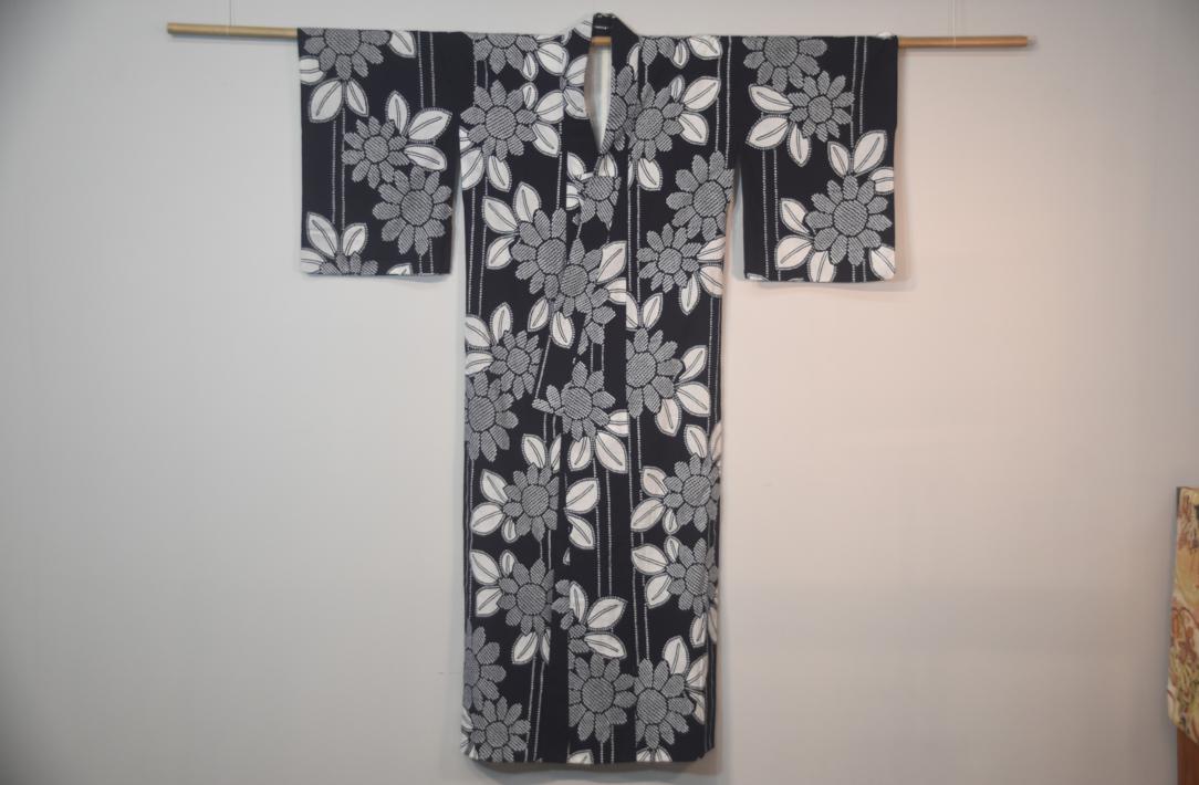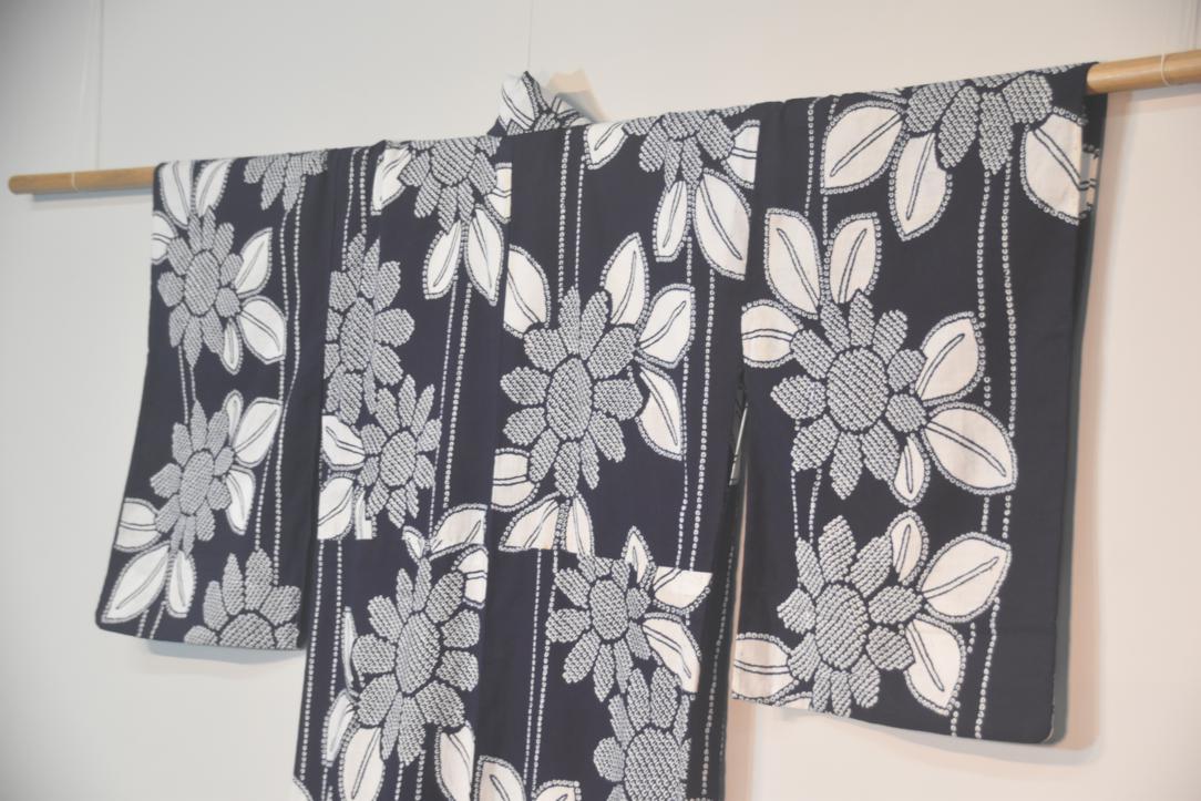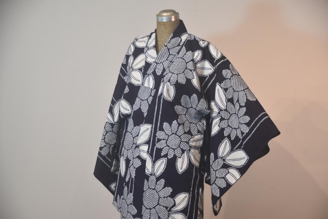 Navy Large Flower Vintage Japanese Cotton Yukata.