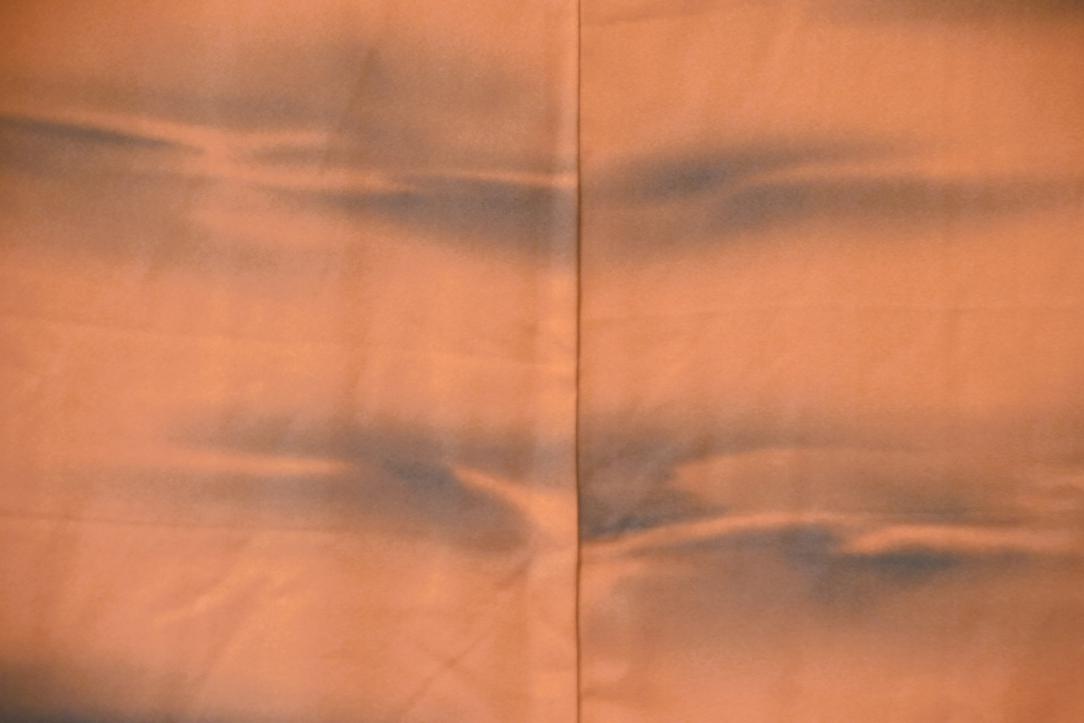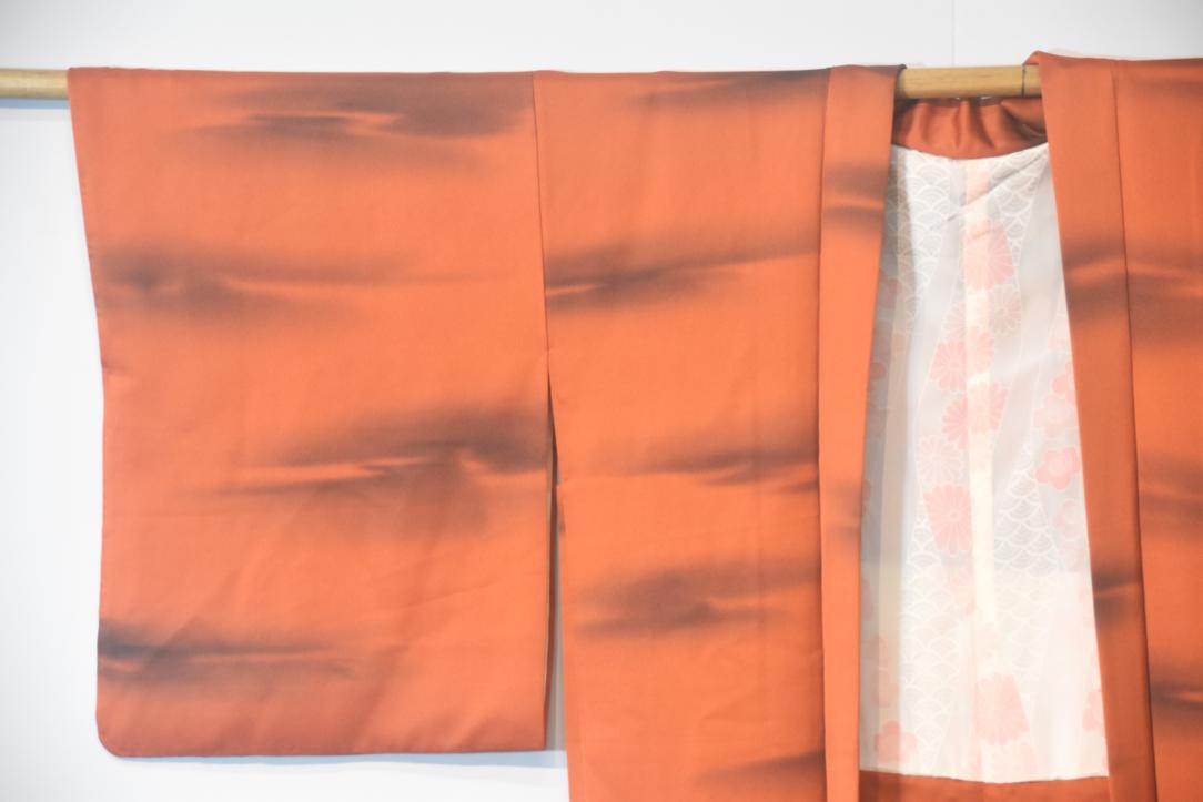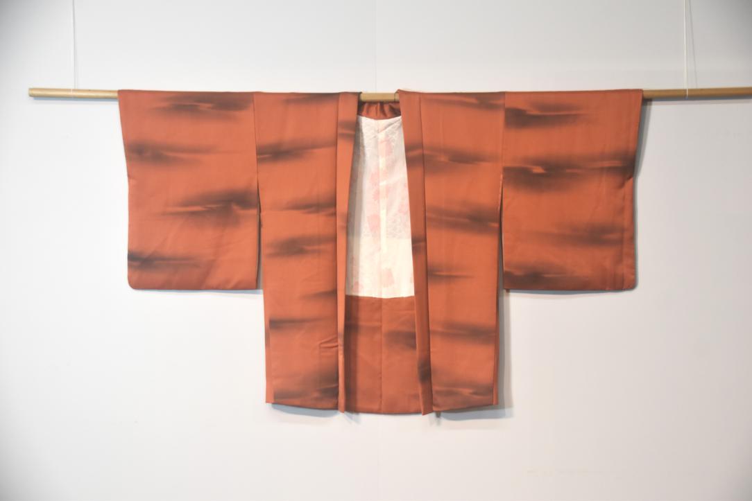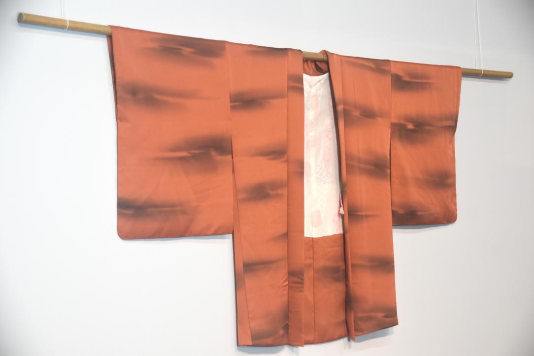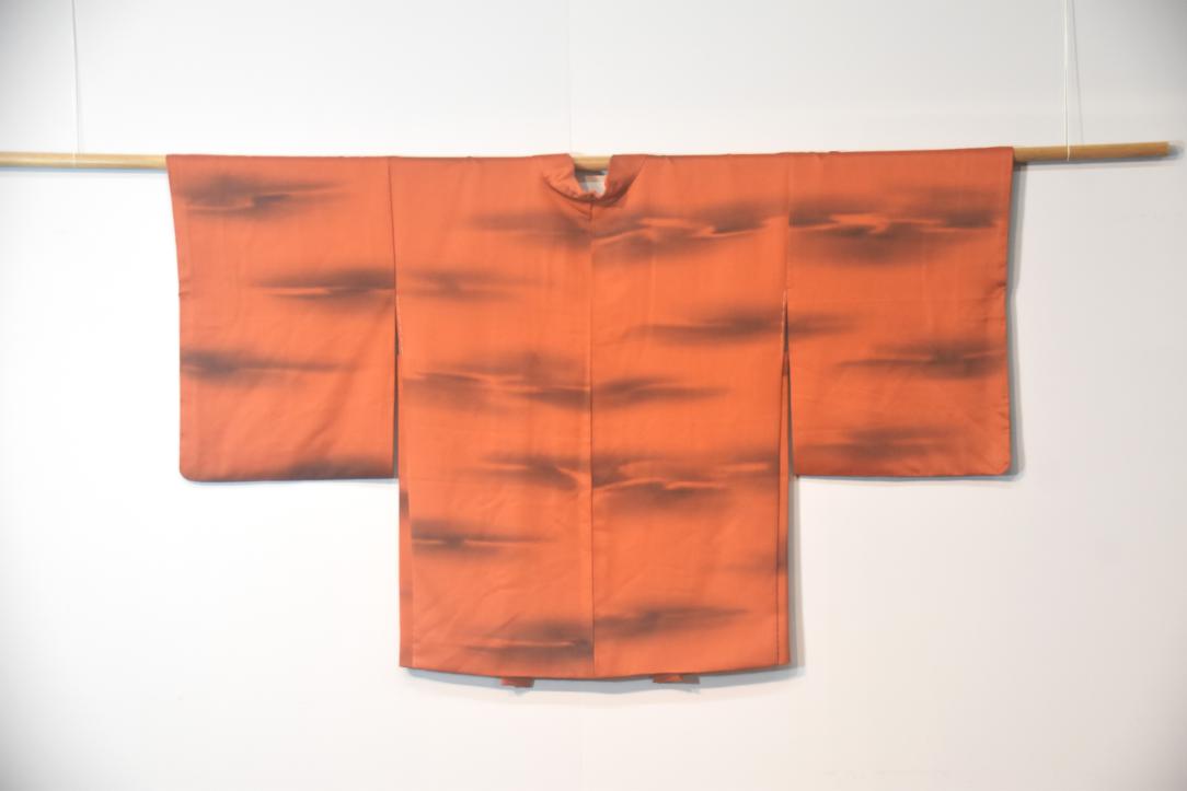 This haori is in a burnt orange with a stormy looking cloud design.