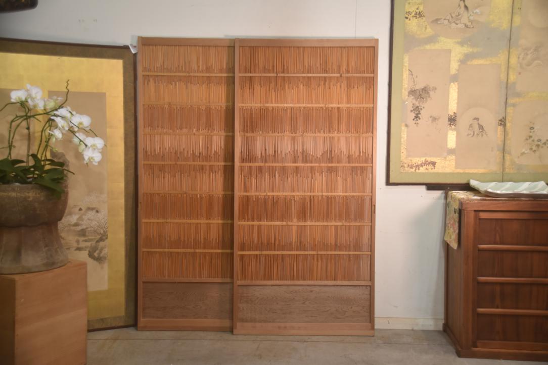 Japanese crafted with fine reed grass panels set within a sturdy Hinoki cypress frame. Natural textures and warm tones create a serene, organic presence, ideal as a room divider or striking decorative accent.