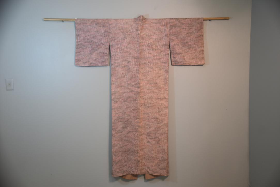 Pink, Grey & Lilac Vintage Japanese Silk Kimono.