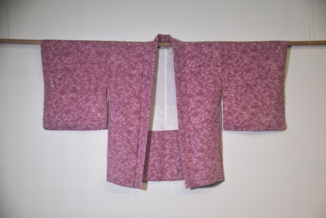 Layered pinks in textural slub silk Vintage Haori Jacket,