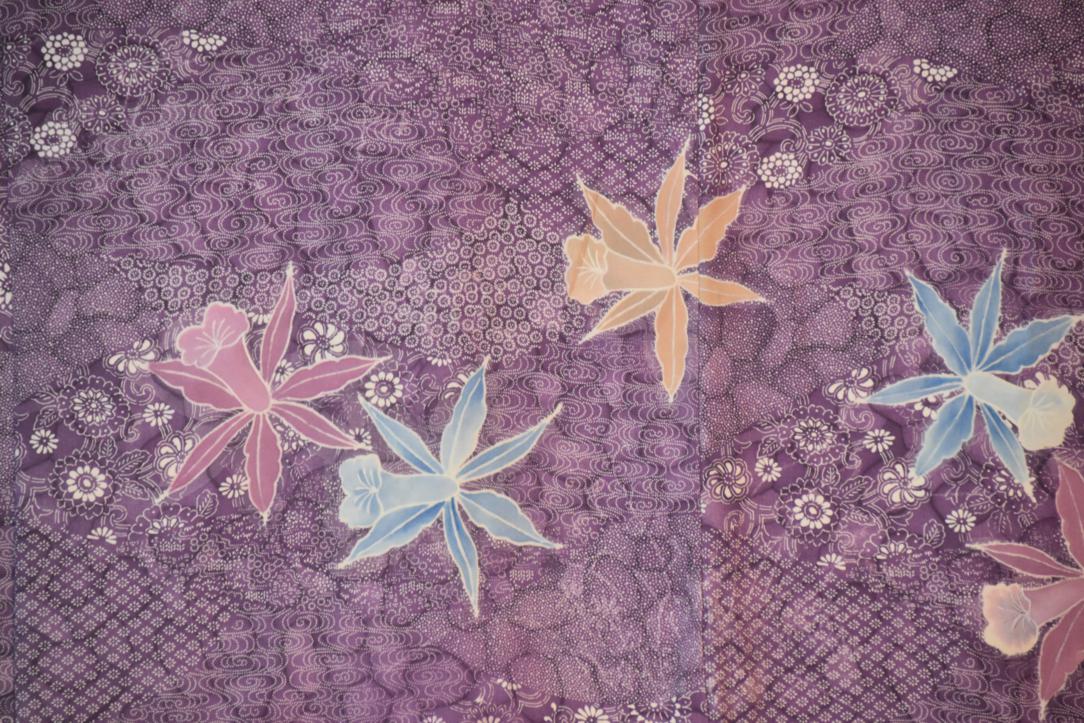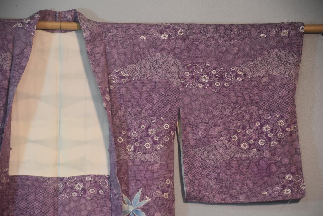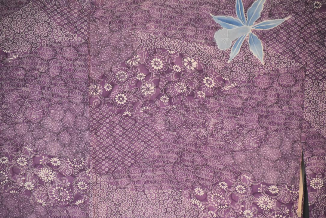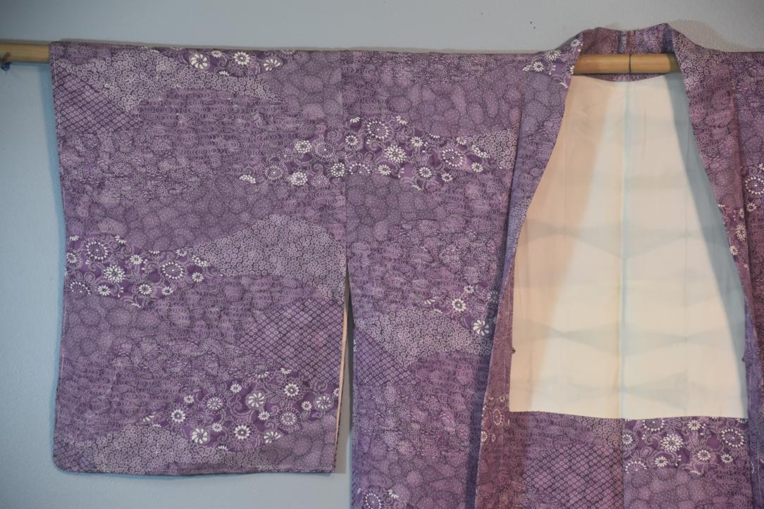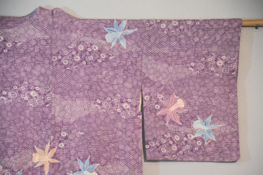 Vintage Japanese Haori Jacket in purple featuring orchid flower design.