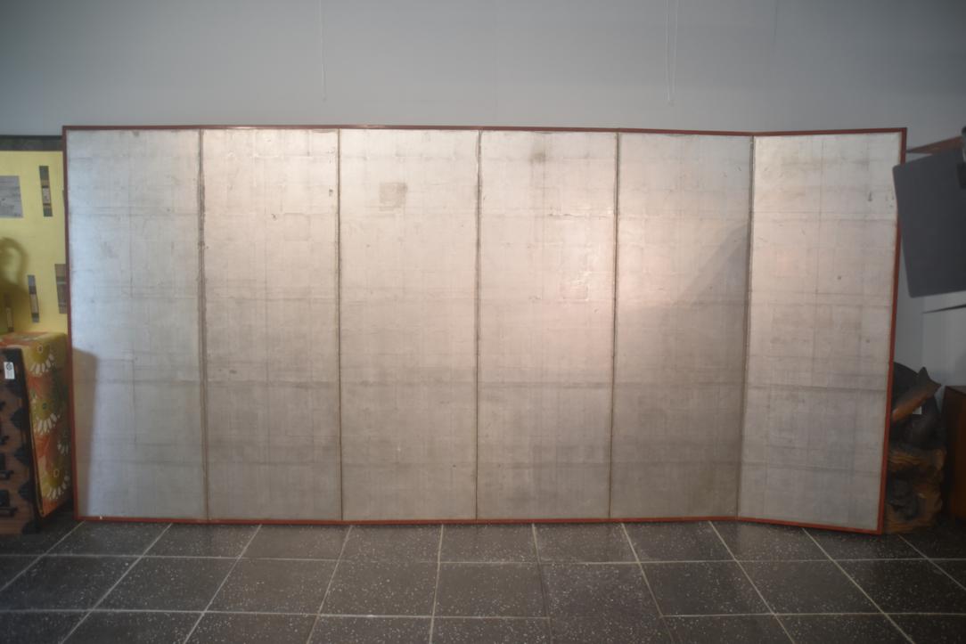 Silver Leaf Byobu 6 Panel Screen. Can be mounted on the wall or used free standing.