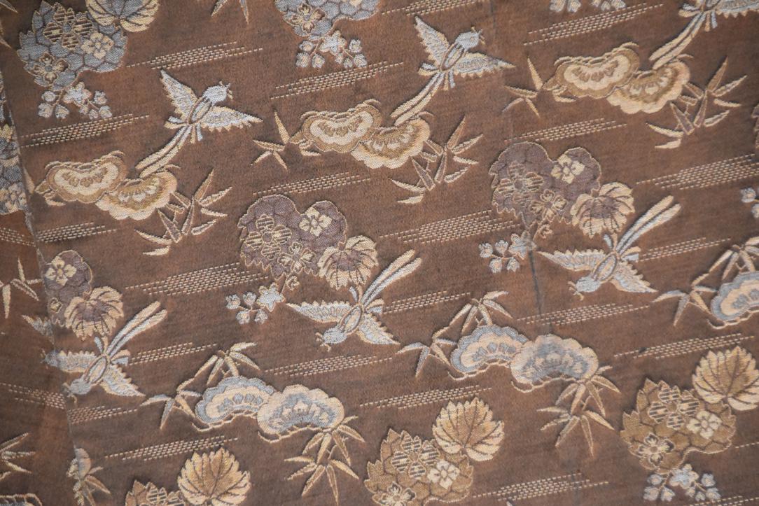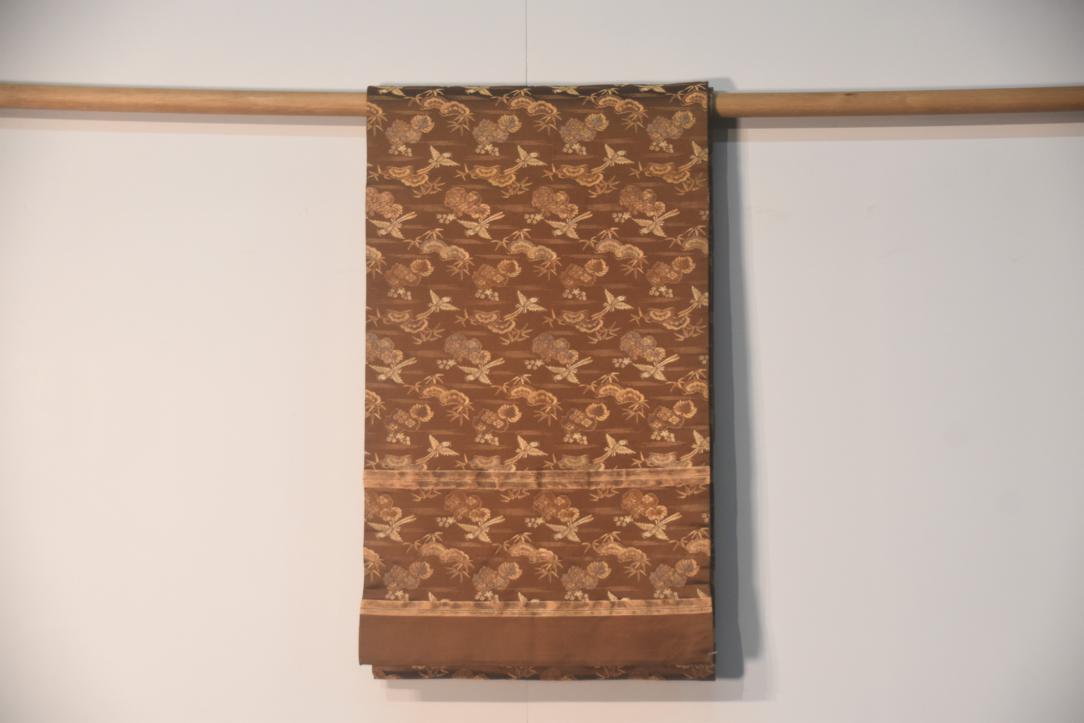The Obi is a formal Japanese sash used with kimono, characterized by its “bag-like” construction, where two lengths of fabric (often silk and decorative lining) are sewn together.