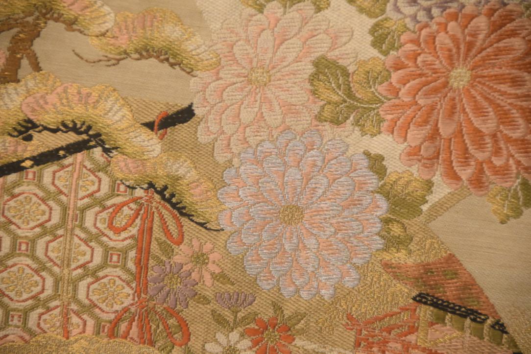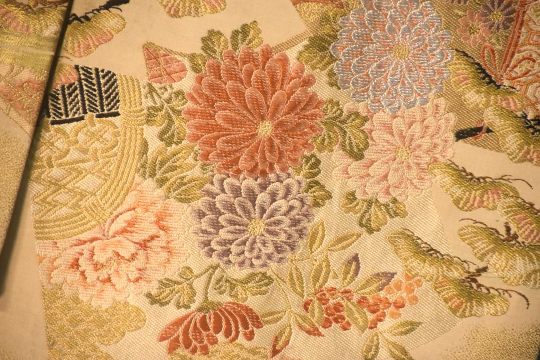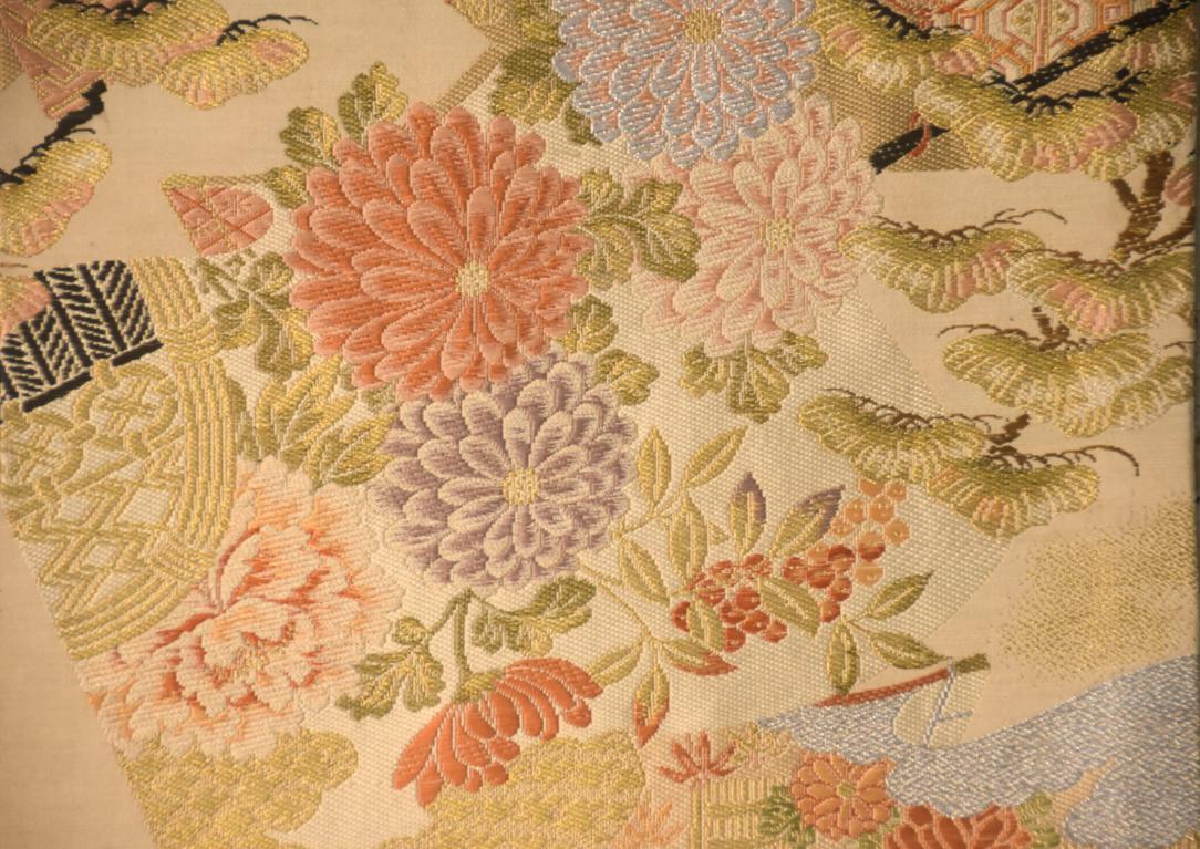 Unlike later obi styles, a maru obi is fully patterned on both sides, woven from a single, continuous length of richly brocaded silk. Because of its heavy embroidery and metallic thread, it is thick and structured, creating dramatic, sculptural knots.
