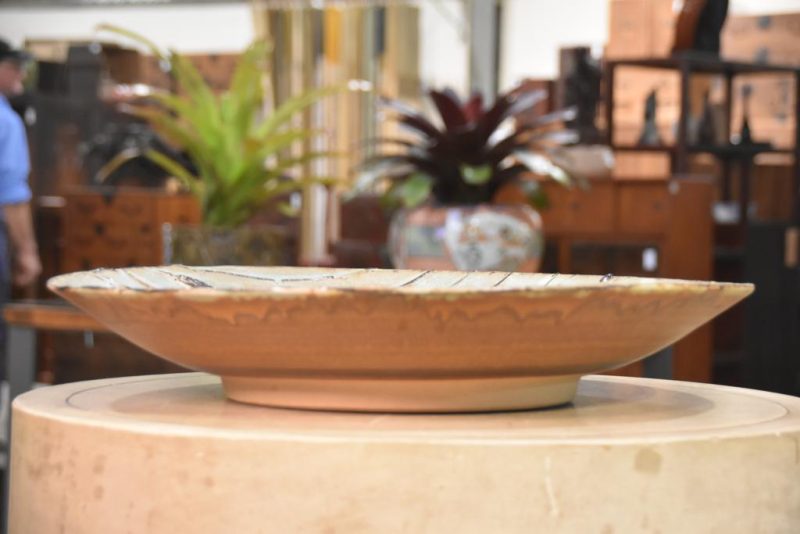 A very unusual decorative platter with a flying crane over water. In good condition.